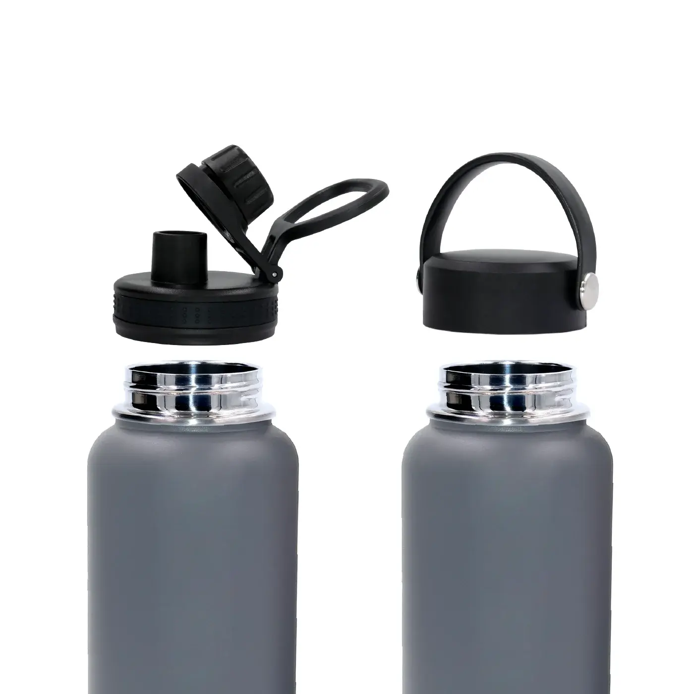 2 LIDS INCLUDED. We`ve got it! BEOLA insulated bottles come with two different lids to meet your requirements—a flip top cap made of high-quality BPA-free plastic and a flexible carry handle lid. Both are spill-proof and easy to use.